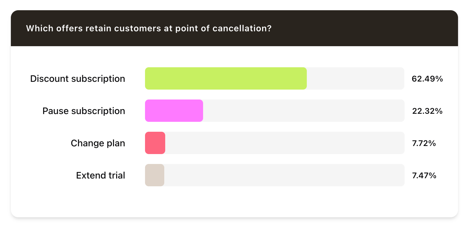 Use feedback AI to identify which friction points, value gaps, and cancellation reasons are driving voluntary churn in your specific subscriber base, giving your customer success team the intelligence to act before a competitor does. And when a subscriber does reach the cancel button, the Cancel Flows feature presents the right offer, like a discount, a pause, or a re-onboarding path, based on the specific reason they are leaving, not a generic retention script.