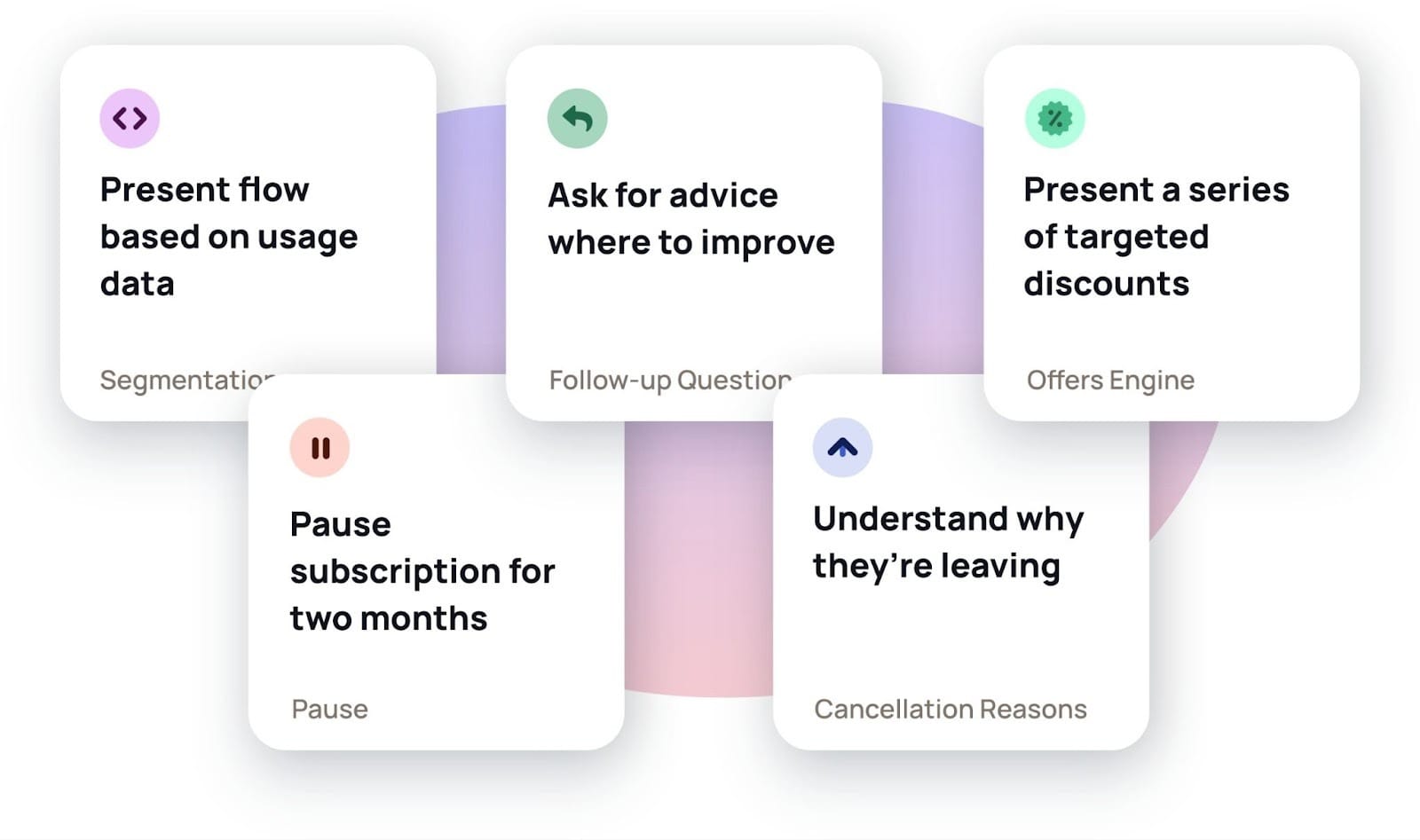 - Cancel flow optimization: Don't let your "Cancel" button be a dead end. Use smart surveys and customized offers to turn a potential goodbye into a pause or a plan downgrade.
