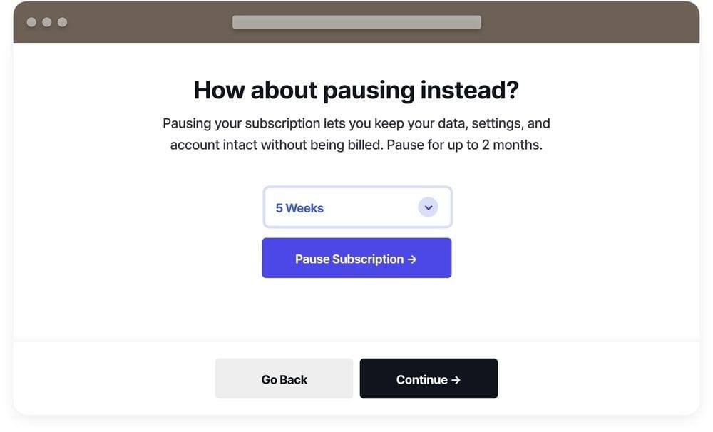 - Offer pause options: B2C users are more likely to pause for a month than accept a minor price cut.