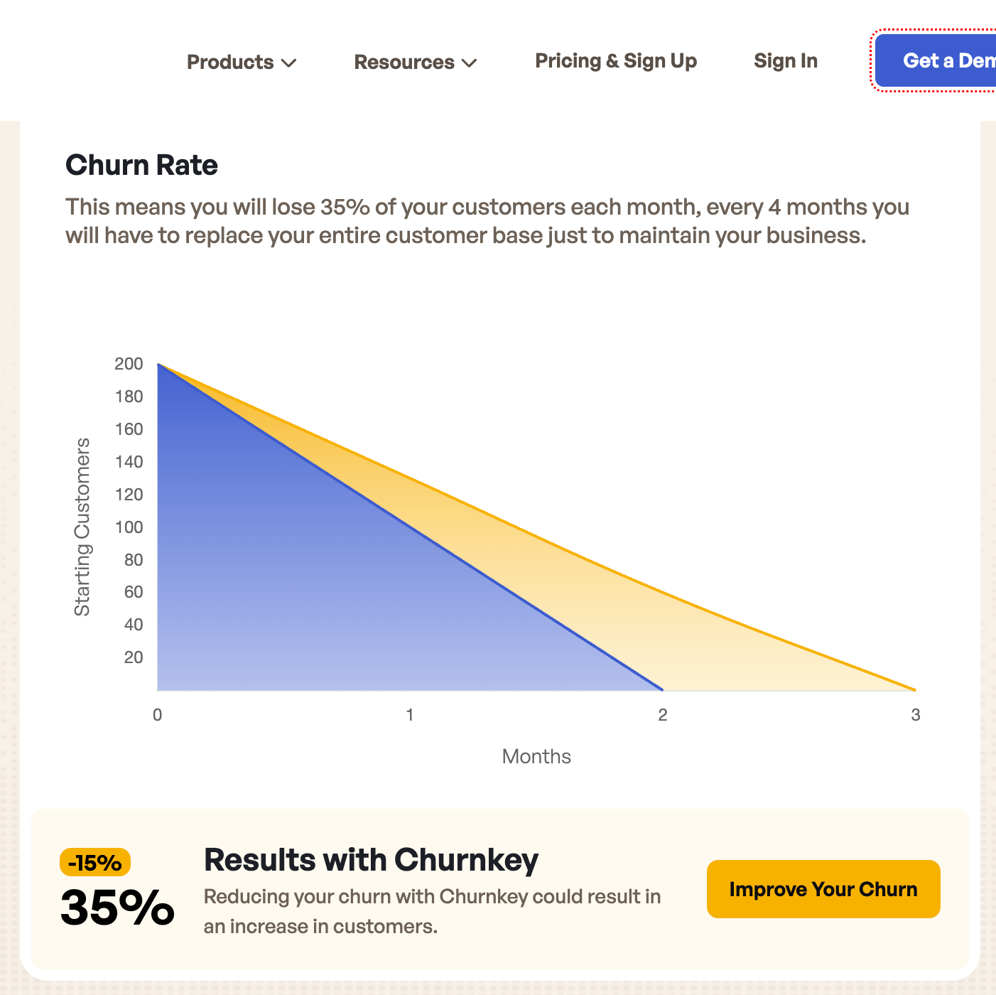 With Churnkey, you don’t have to worry about manually following up with each and every at-risk customer. Instead, you can identify and stop churn in its tracks before it occurs with customer-centric, user-friendly experiences. Are you ready to start combating customer churn? Schedule a demo and see how Churnkey is helping SaaS businesses reduce churn and retain more users.